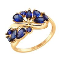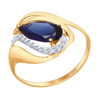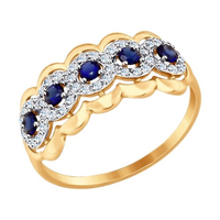 Кольцо из золота с корундом сапфировым (синт.) и фианитами sokolov арт 060