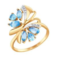 Кольцо из золота с синими топазами и фианитами sokolov арт 064