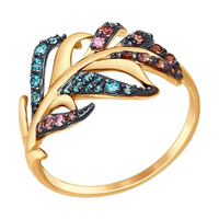 Кольцо из золота с зелеными и розовыми фианитами sokolov арт 045