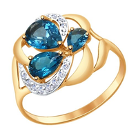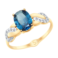 Кольцо из золота с синим топазом и фианитами sokolov арт кз-083