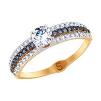 Кольцо из золота с бесцветными и синими фианитами sokolov арт 046