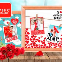 Рамка на 14 февраля [40*40] дерево, шпагат, 18 прищепок, 1 фон (выбор фона из ассортимента)
