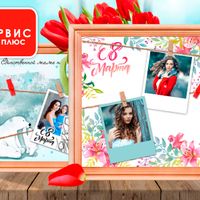 Рамка на 8 марта [40*40] дерево, шпагат, 18 прищепок, 1 фон (выбор фона из ассортимента)