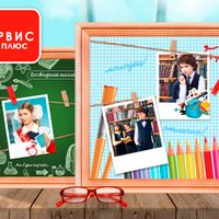 Рамка тематическая (школа, детский сад) [40*40] дерево, шпагат, 18 прищепок, 1 фон (выбор фона из ассортимента)
