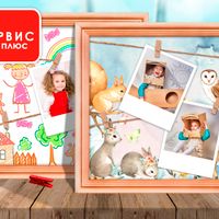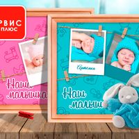Рамка детская/малыши [40*40] дерево, шпагат, 18 прищепок, 1 фон (выбор фона из ассортимента)