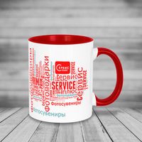 Кружка керамика, глянцевая, белая с красными внутренней заливкой и ручкой [310мл] (с печатью принта, надписи, фотографии)