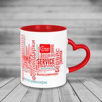 Кружка керамика, глянцевая, белая с красными внутренней заливкой и ручкой в форме сердца [310мл] (с печатью принта, надписи, фотографии)
