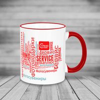 Кружка керамика, глянцевая, белая с красными ободком и ручкой [310мл] (с печатью принта, надписи, фотографии)