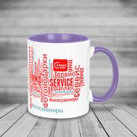 Кружка керамика, глянцевая, белая с лавандовыми внутренней заливкой и ручкой [310мл] (с печатью принта, надписи, фотографии)