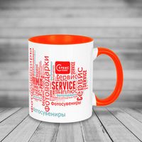 Кружка керамика, глянцевая, белая с оранжевыми внутренней заливкой и ручкой [310мл] (с печатью принта, надписи, фотографии)