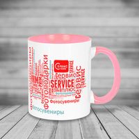 Кружка керамика, глянцевая, белая с розовыми внутренней заливкой и ручкой [310мл] (с печатью принта, надписи, фотографии)