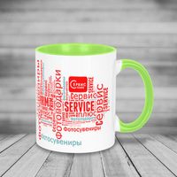 Кружка керамика, глянцевая, белая с салатовый внутренней заливкой и ручкой [310мл] (с печатью принта, надписи, фотографии)