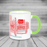 Кружка керамика, глянцевая, белая с салатовыми ободком и ручкой [310мл] (с печатью принта, надписи, фотографии)