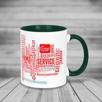 Кружка керамика, глянцевая, белая с темно-зелеными внутренней заливкой и ручкой [310мл] (с печатью принта, надписи, фотографии)
