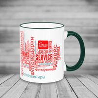 Кружка керамика, глянцевая, белая с темно-зелеными ободком и ручкой [310мл] (с печатью принта, надписи, фотографии)