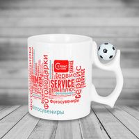 Кружка керамика, глянцевая, белая с футбольным мячиком на ручке [310мл] (с печатью принта, надписи, фотографии)
