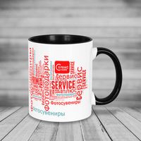 Кружка керамика, глянцевая, белая с черными внутренней заливкой и ручкой [310мл] (с печатью принта, надписи, фотографии)