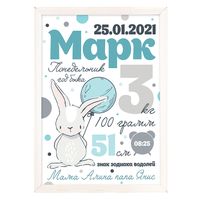 Метрика постер детская [изготовление метрик] печать + рамка А4+ выбор шаблона + эл.копия