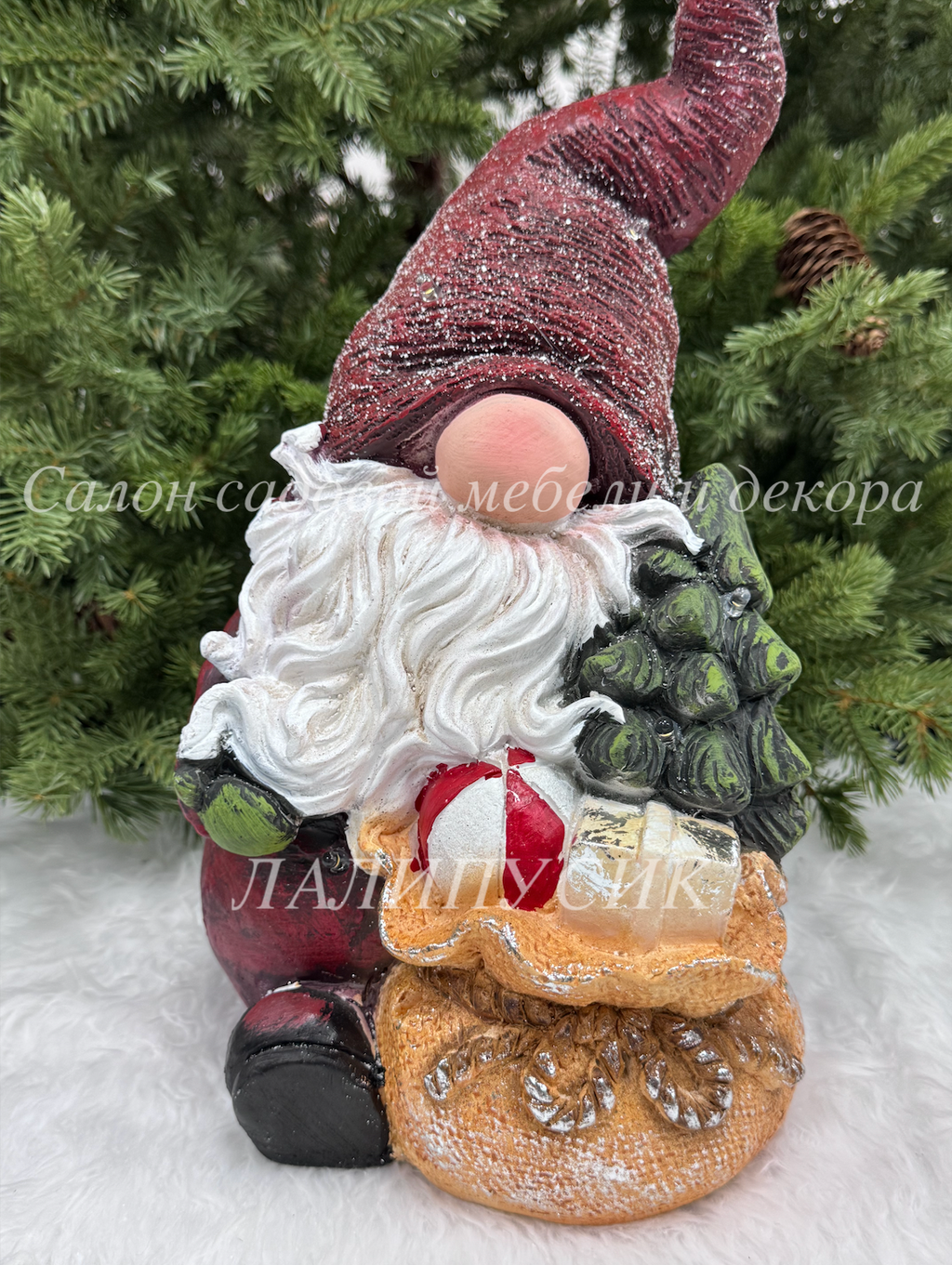 Такой сувенир, как новогодняя интерьерная фигура «Гном с подарками» принесет в ваш дом волшебство и ощущение праздника, а также создаст атмосферу веселья и радости!