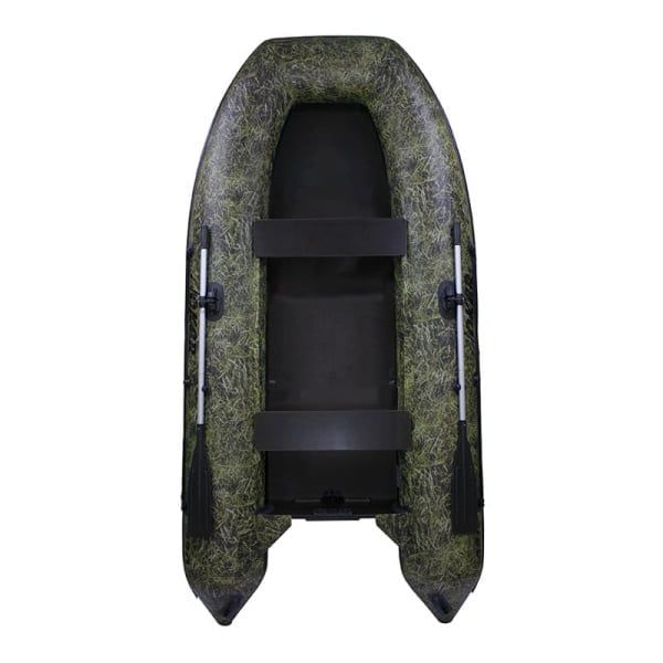 Надувная лодка имеет четко выраженную килеватость, что придает ей высокую прочность. Это достигается благодаря использованию плотной ткани ПВХ с плотностью 850 г/м2 для изготовления баллонов и днища. Сложный рельеф дна наделяет лодку хорошей устойчивостью и уверенным выходом на глиссирование. В носовой части лодки установлен рым, а по всему периметру - бортовой привал. Кроме того, днище дополнительно усилено по килю.