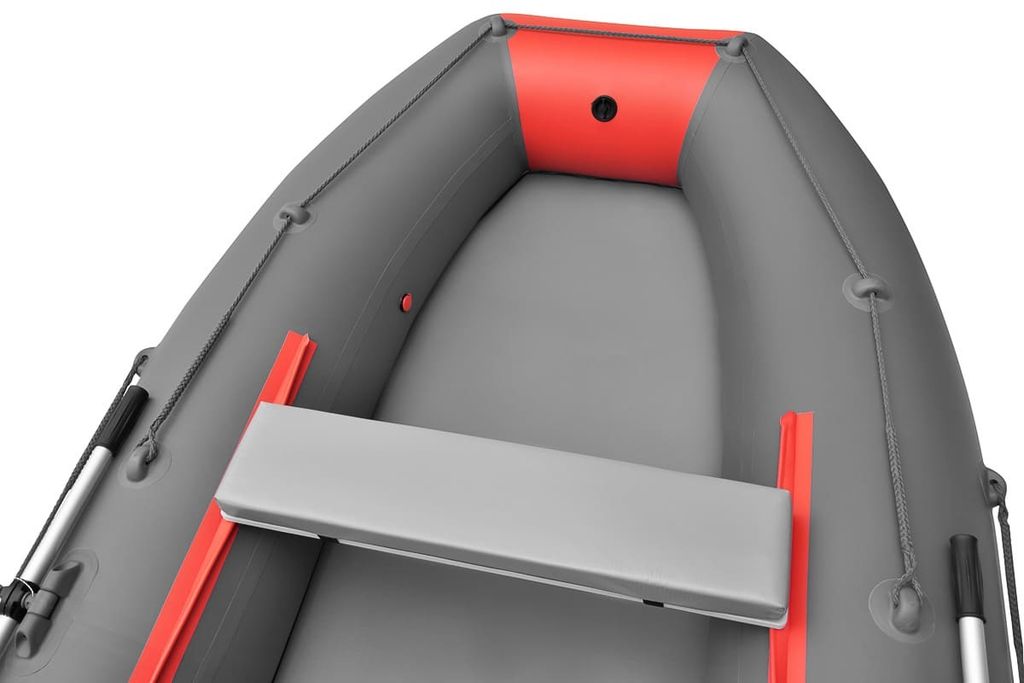 Неразборный корпус лодки и дна позволяет произвести сборку и разборку быстро, и не займет у Вас много времени и сил, Вам останется только наполнить надувные секции воздухом, и Ваша лодка готова к эксплуатации, время сборки лодки менее 15 минут. Независимые отсеки надувного дна, при наполнении их воздухом преобразуют дно в V - образную форму, что дает лодке превосходную управляемость по волне, а смещенный транец - просторный кокпит и небольшой вес лодки