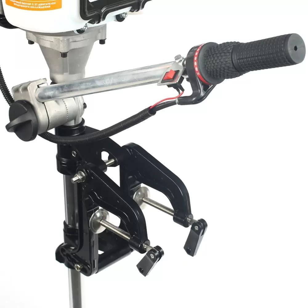 Подвесной лодочный мотор предназначен для установки на лодки и маломерные суда до 3 м. Многофункциональная рукоятка позволяет плавно регулировать обороты двигателя и выключать зажигание при необходимости. Подводная часть имеют улучшенную гидродинамику для минимального сопротивления при движении. Мотор оснащен транцевым креплением и имеет возможность регулировки по высоте и углу установки. Металлический винт, мерная емкость и воронка в комплекте поставки.