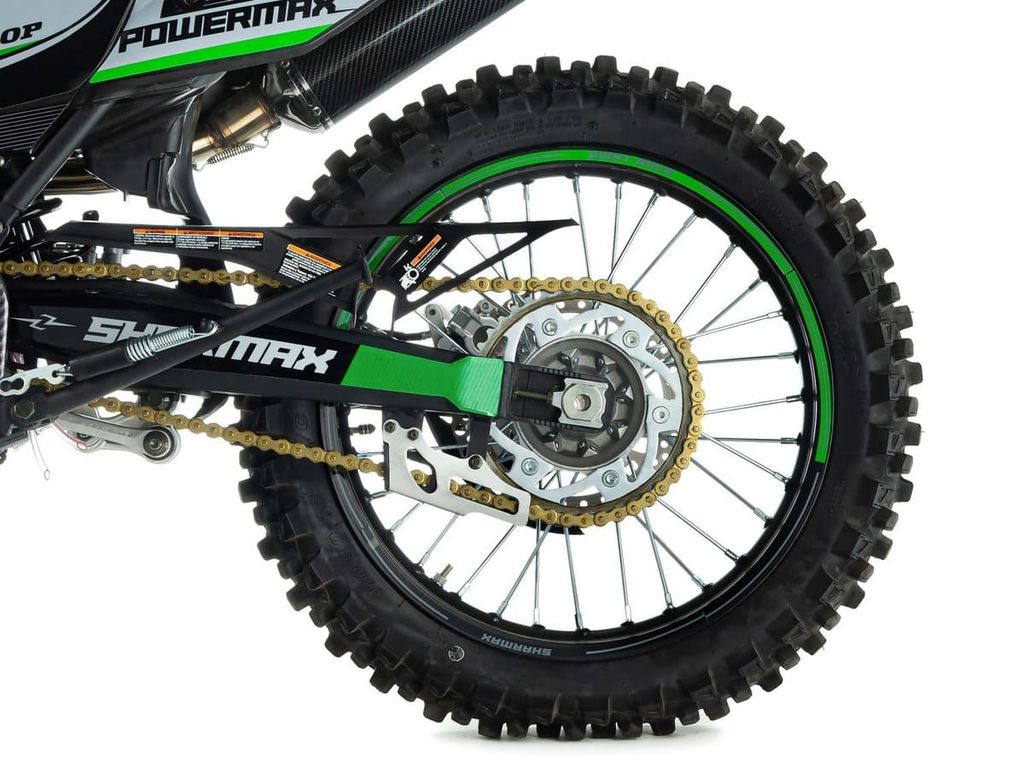 Подвеску Sharmax Motors PowerMax 320 можно настроить под грязь, камни и песок без потери качества. Передняя вилка имеет регулировки сжатия и отбоя, задняя — оборудована системой прогрессивного демпфирования. Байк легко настроить под свой вес, подобрав идеальный баланс жёсткости.