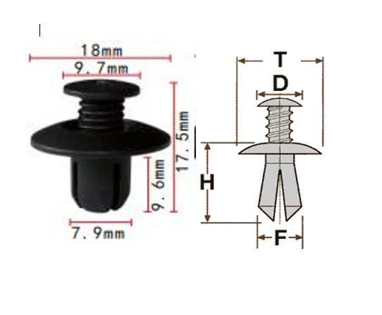 Клипса T-0021 автомобильная с резьбовым штырьком, 25шт.