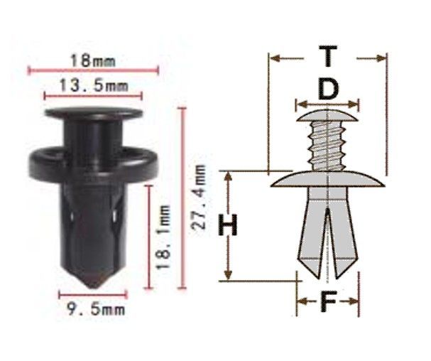Клипса T-1004 (KJ-685/KJ-1151) автомобильная с нажимным штырьком, 25шт.