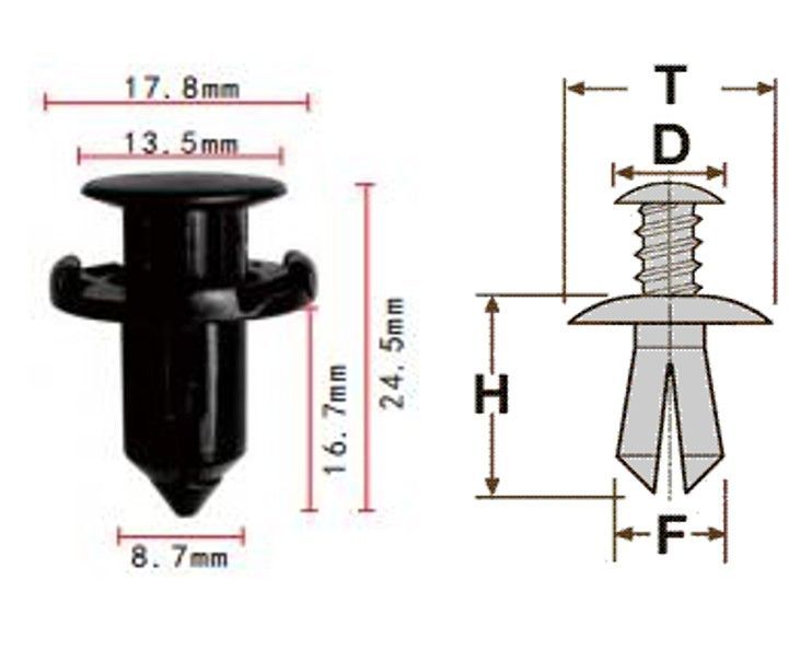 Клипса T-1010 ( KJ-838) автомобильная с нажимным штырьком, 25шт.