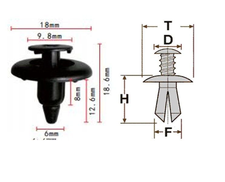 Клипса T-0018 автомобильная с резьбовым штырьком, 25шт.