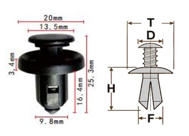Клипса T-0021 автомобильная с резьбовым штырьком, 25шт.