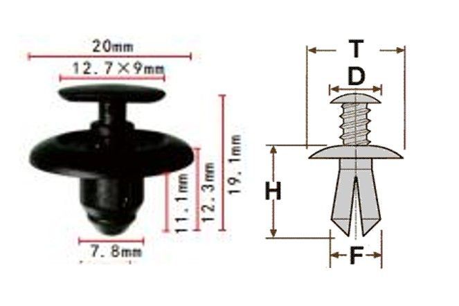 Клипса T-1184 (KJ-1456) автомобильная с нажимным штырьком, 25шт.