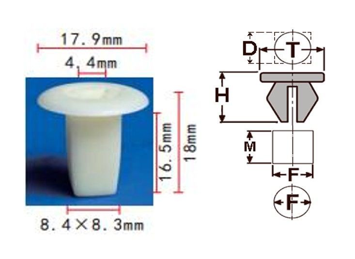 Клипса T-0018 автомобильная с резьбовым штырьком, 25шт.