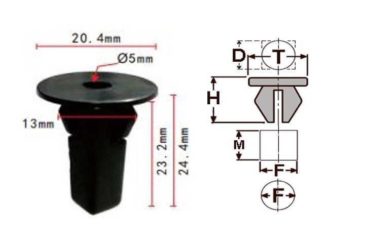 Клипса T-0024 автомобильная с резьбовым штырьком, 25шт.