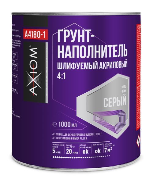 AXIOM Грунт-наполнитель шлифуемый акриловый 4:1 серый + отв. (1л+0,25л)