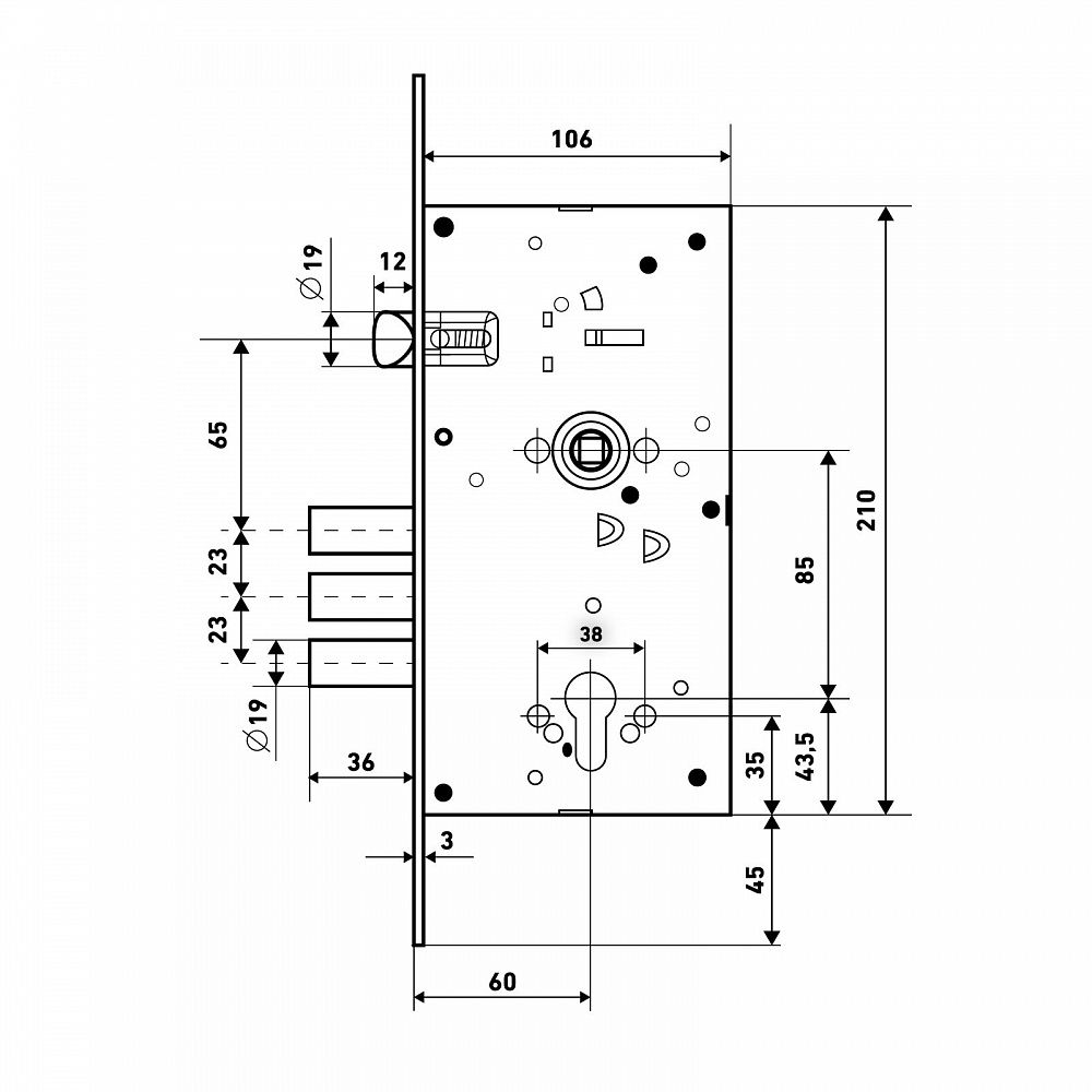 БУЛАТ ЗВ4-3(16).60.85.08 хром, без ручек, без ц/мех.,б/о. Корпус замка для металлических дверей (12)
