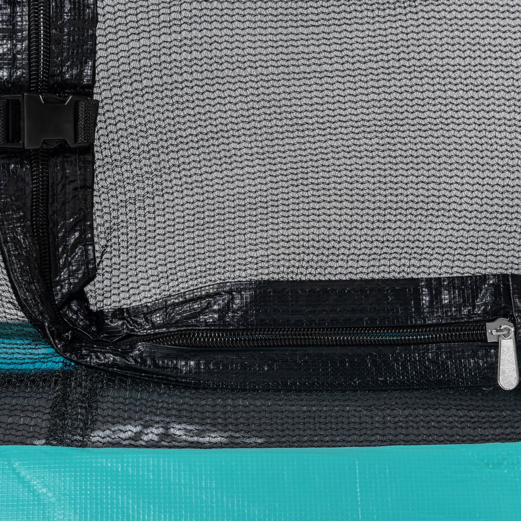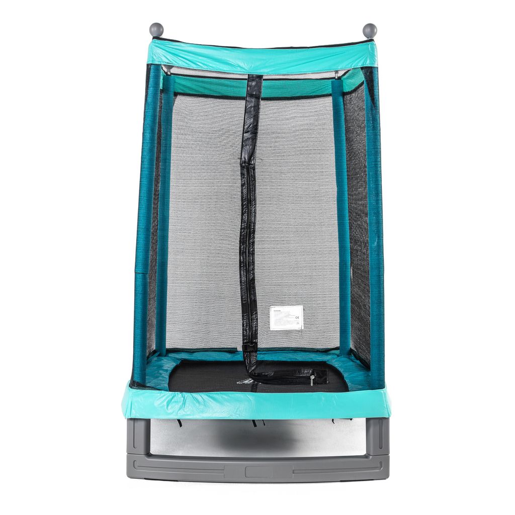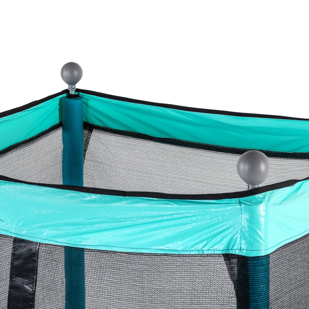 Батут выполнен в необычном, ярком лазурном цвете. Он поднимает настроение и привлекает внимание детей всех возрастов.