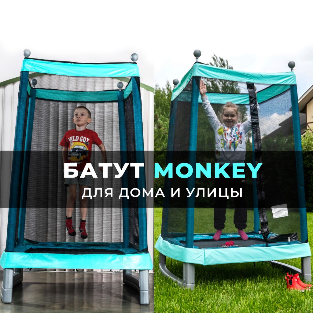 Детский батут DFC MONKEY сине-зелёного цвета предназначен для домашнего использования. Имеет компактные размеры и оснащён защитной сеткой.
