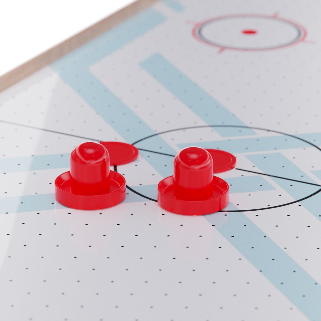 В комплекте имеются две биты, две шайбы и электронный счетчик. Размеры стола составляют 122 см в длину, 60 см в ширину и 76 см в высоту. Материал изготовления - МДФ. Этот игровой стол идеально подойдет для развлечения в кругу друзей или семьи.