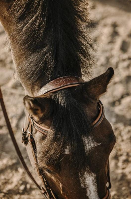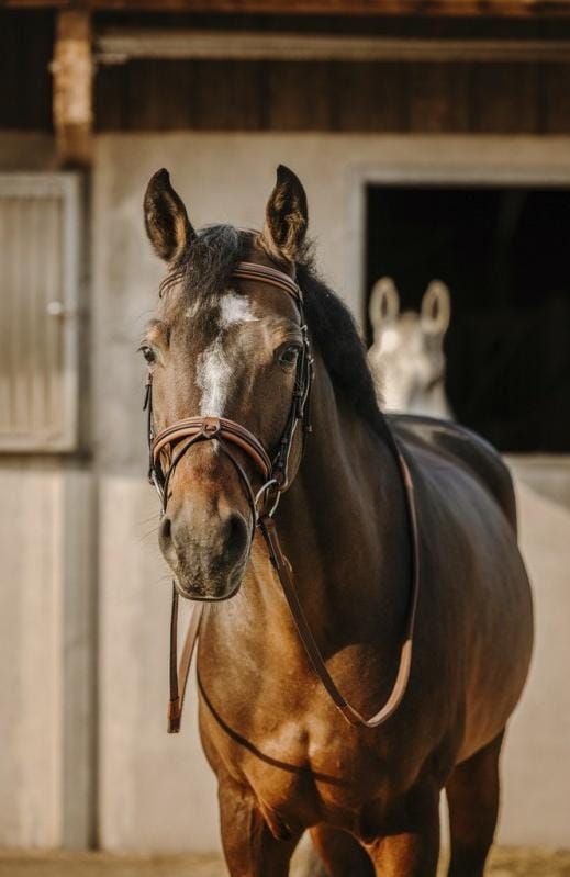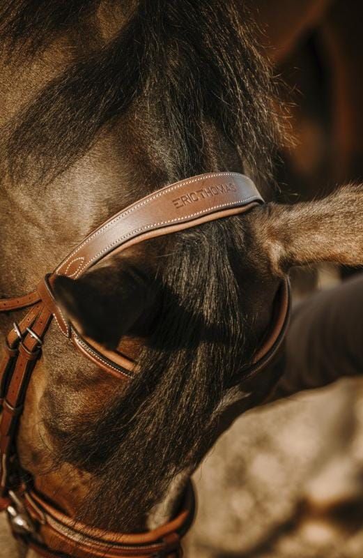Уздечка с мягким анатомическим ободком и накладкой для носа.- Элегантность из анилиновой кожи высшего качества.- Комфорт и мягкость: Мягкий головной убор и комбинированная накладка для носа из ткани Clarino.- Изысканный дизайн: Белая прострочка.- Прочная: благодаря фурнитуре из нержавеющей стали, эта уздечка сочетает в себе роскошь и надежность.Продается без поводьев.