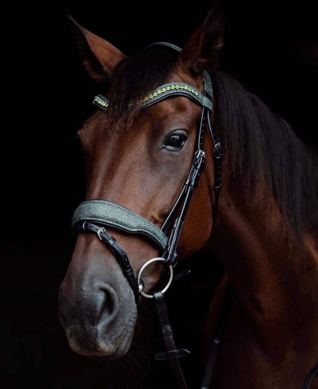 Оголовье RADIANCE ◾️ выполнено из натуральной кожи◾️ налобный ремень со стразами высокого качества ◾️ прорезиненный повод в комплекте◾️ надежные крепления