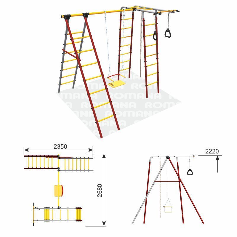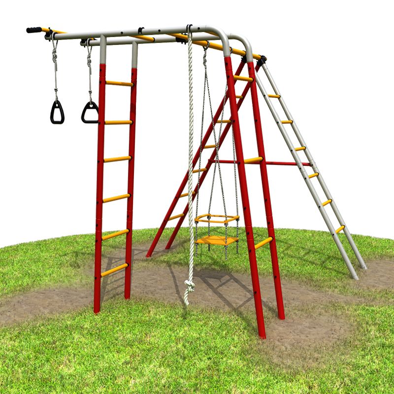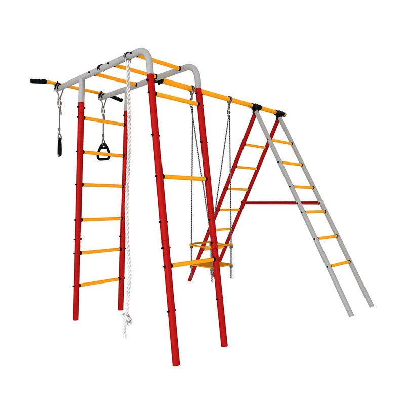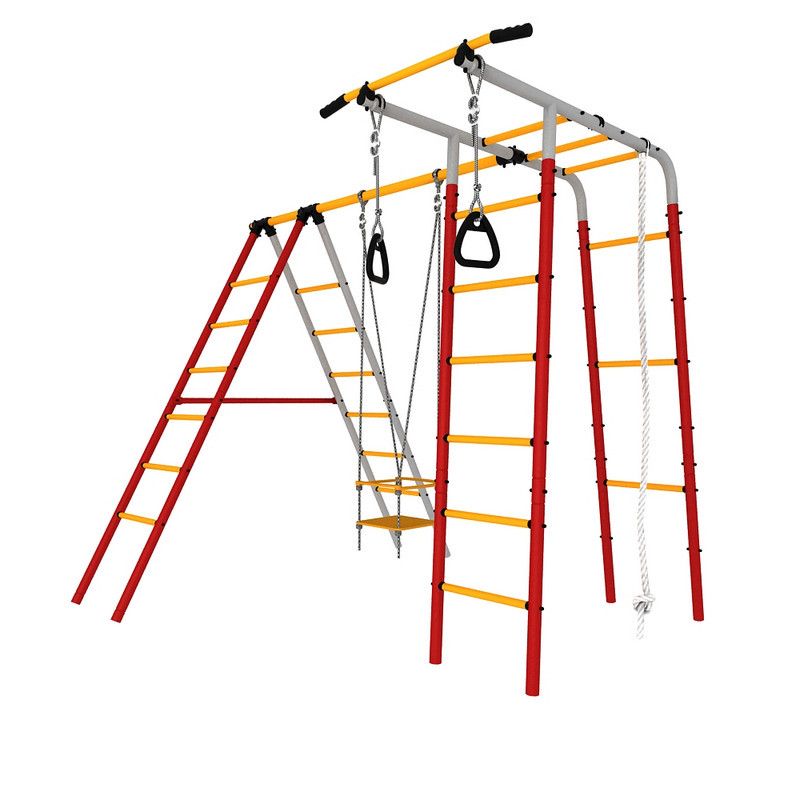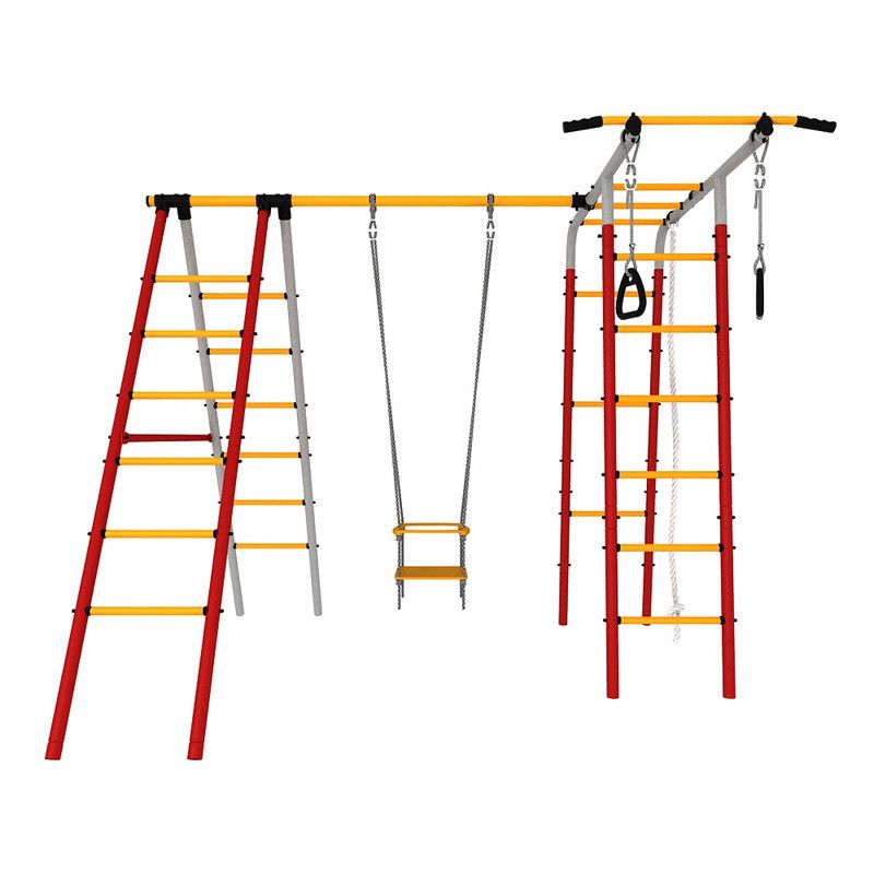 4 лестницы гимнастические, перекладина. качели рукоход, турник, кольца гимнастические, канат.