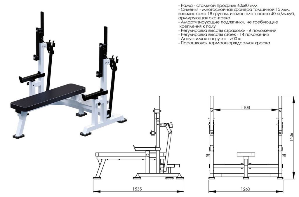 • Регулировка высоты стоек – 14 положений;