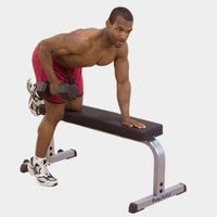 Скамья-стул с вертикальной спинкой. Прочная устойчивая конструкция обеспечивает стабильность при выполнении упражнений с гантелями и штангой. Сверхплотная подушка DuraFirm™ c двойным швом создает должный комфорт тренировки.