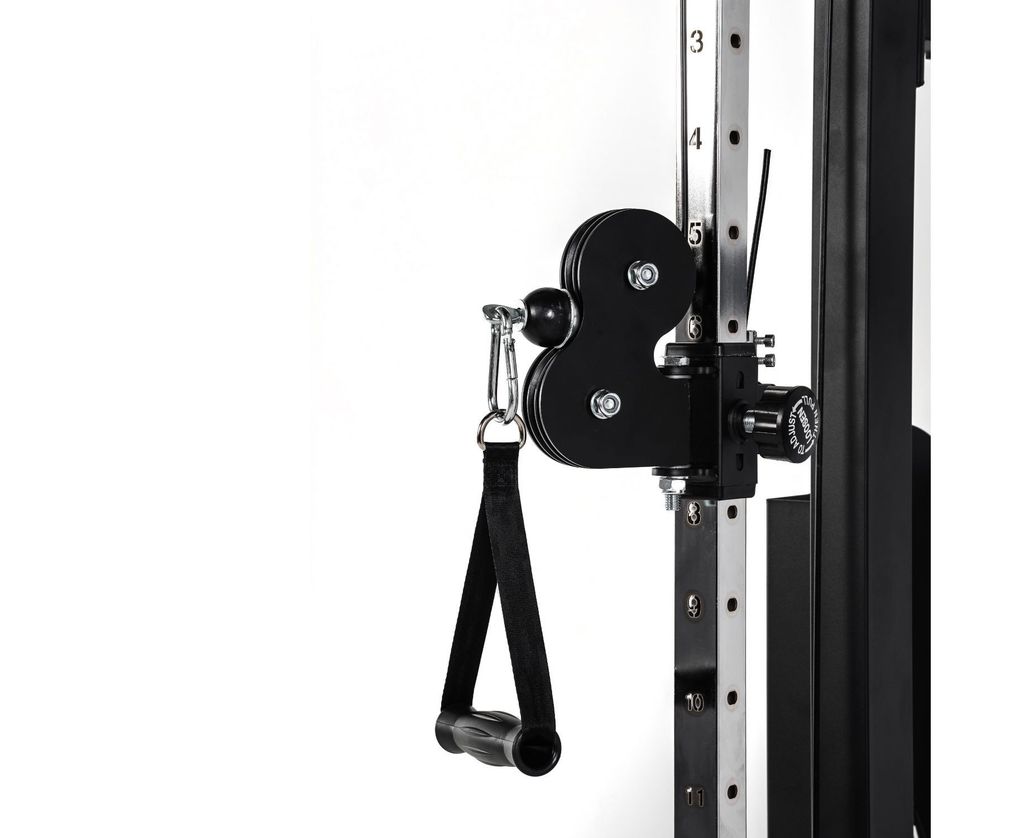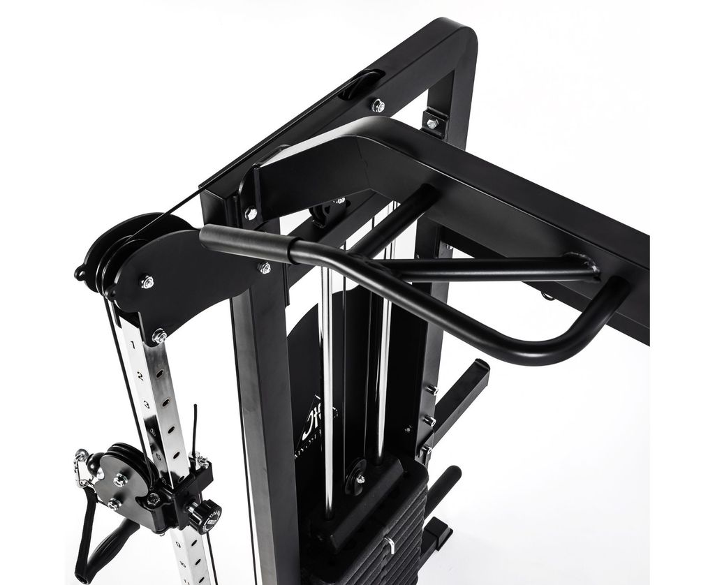 Силовой тренажер (кроссовер) со встроенными весами. Позволяет отлично прорабатывать мышцы верхней части тела благодаря множеству упражнений. Каждый блок с роликами регулируется по высоте тренажера.