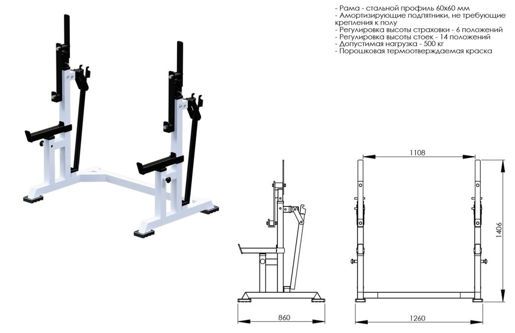 • Регулировка высоты стоек – 14 положений;