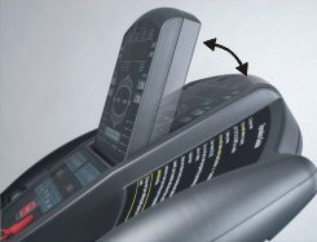 Экран консоли может регулироваться выше–ниже для людей разного роста, именно поэтому высота тренажера вариативная 128-136 см.