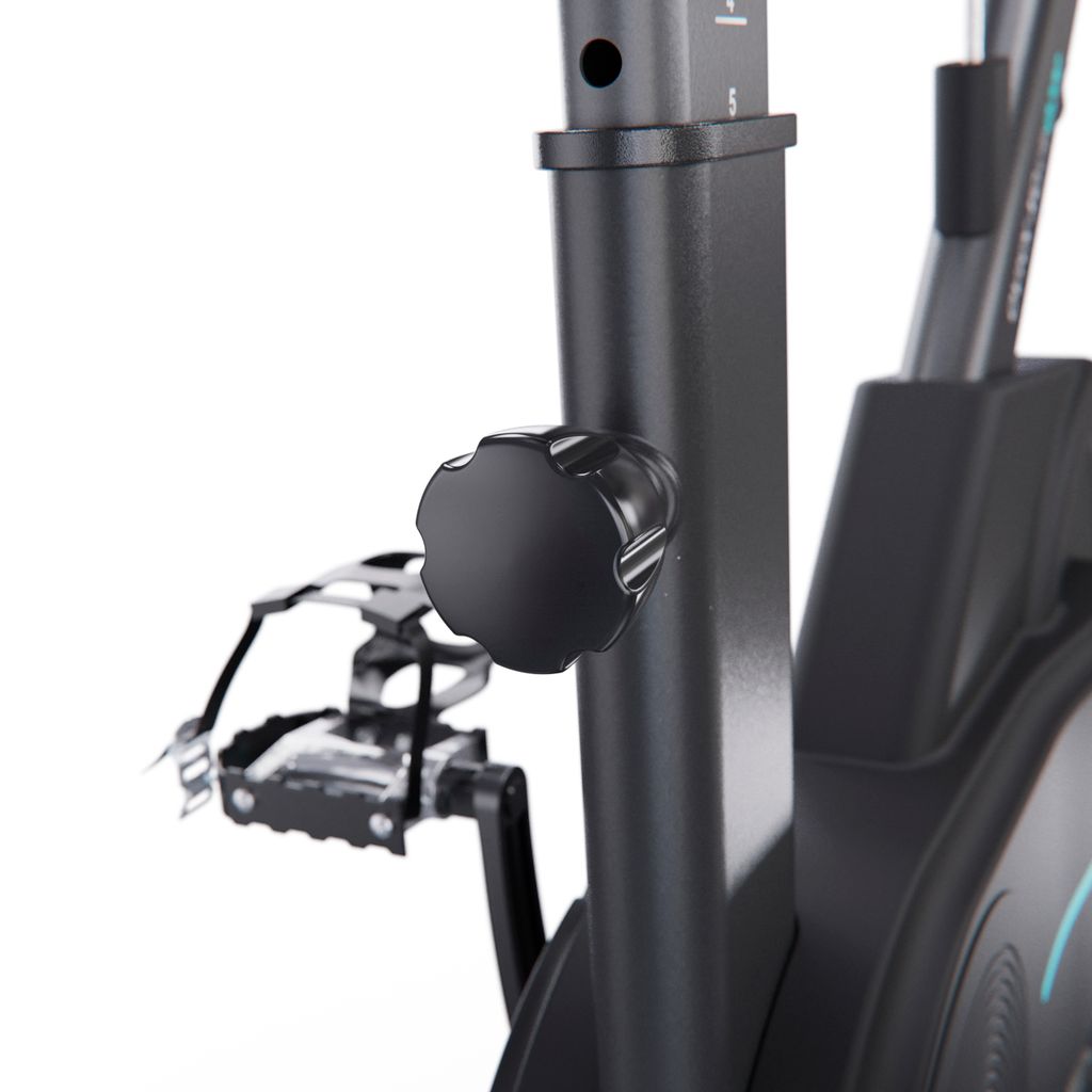 Спортивное сиденье регулируется не только по высоте и горизонтали, но и углу наклона, таким образом меняя интенсивность тренировки и положение пользователя в седле. Руль также регулируется по высоте, внося разнообразие и делая тренажёр более комфортным. Спин-байк рассчитан на пользователя весом до 130 кг.