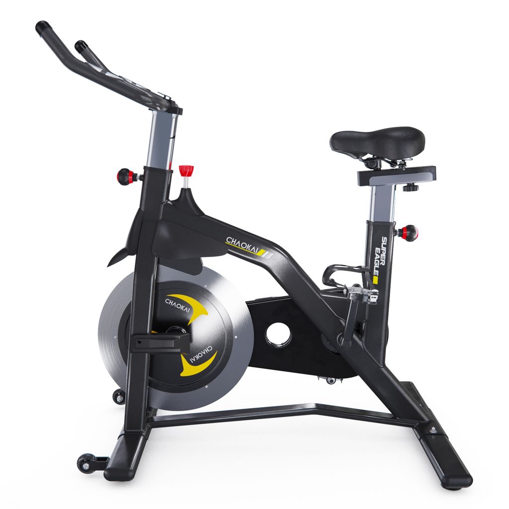 Спин-байк CHAOKE чёрного цвета удобнее и тише других. Прочная стальная рама и алюминиевый маховик весом 19 килограмм обеспечивают устойчивость во время езды на велосипеде. Он выдерживает нагрузку до 150 кг и подходит для пользователей ростом от 146 до 198 см.